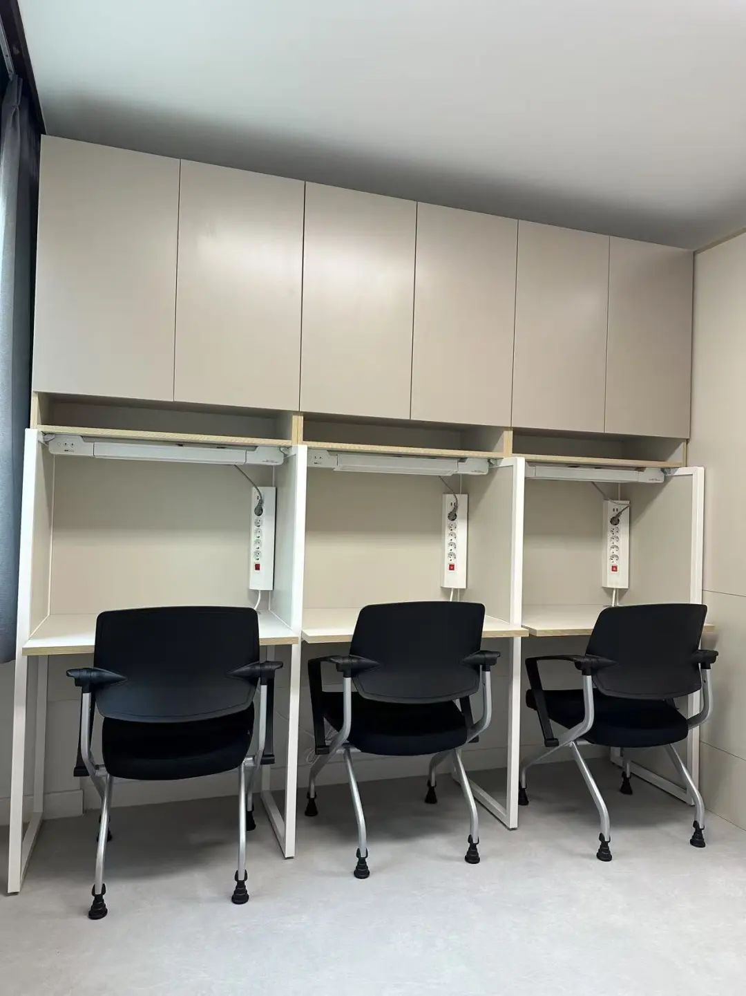 在宿舍中,学校还特别设立了安静舒适的学习房,为同学们提供了一个专注学习的理想场所。学习房内配备了宽敞的书桌、舒适的座椅以及充足的照明设施,营造出良好的学习氛围。无论是期中期末的紧张复习,还是平时的自主学习,这里都能满足大家的需求。此外,学习房还提供了稳定的网络连接和电源插座,方便同学们使用笔记本电脑或其他电子设备进行学习。为了让大家能够更好地集中精力,学习房内还特别设置了静音规则,确保环境安静无干扰。无论是独自钻研,还是与同学一起讨论问题,学习房都是一个理想的选择。这一贴心的设计不仅体现了学校对同学们学业发展的支持,也为宿舍生活增添了更多的便利与温馨。